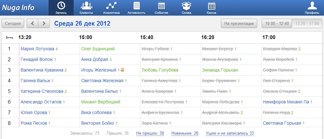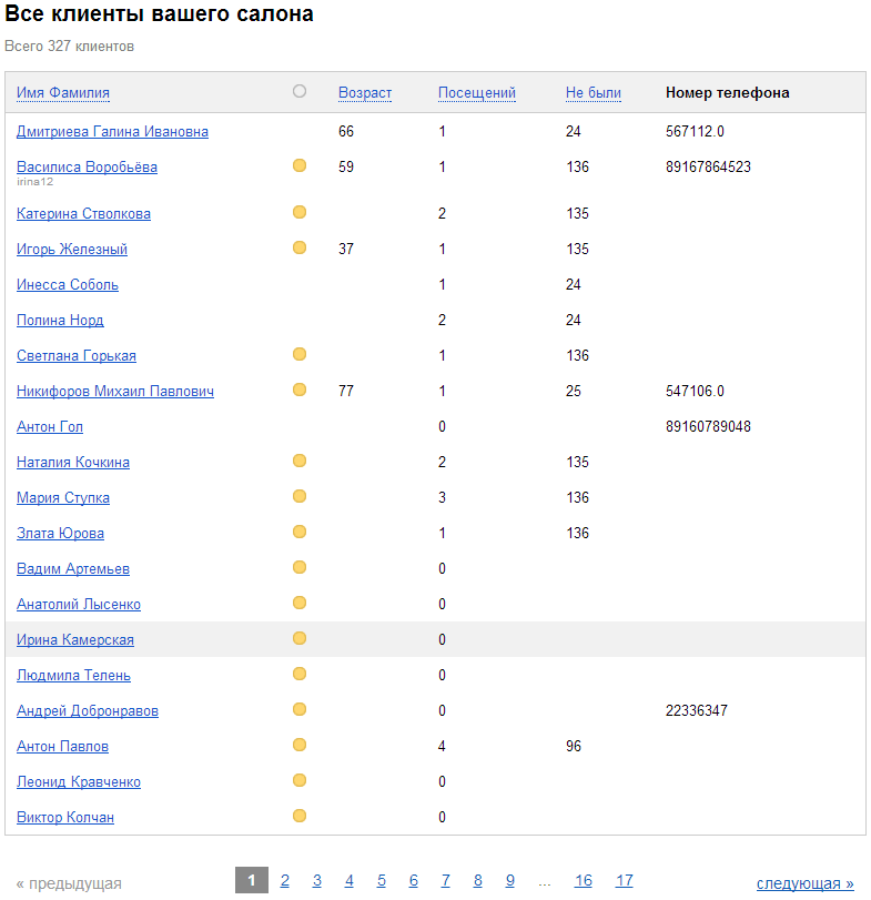 Цифра, стоящая после имени клиента, указывает на количество его визитов, по