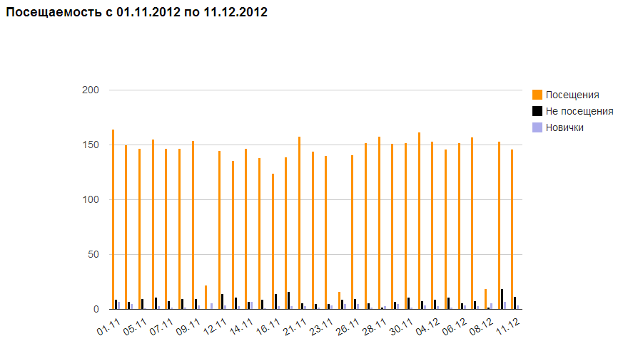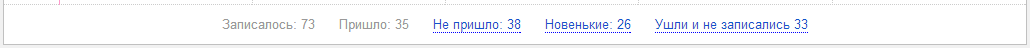 количество новичков, количество не пришедших, а также тех, кто пришёл сегодня, но