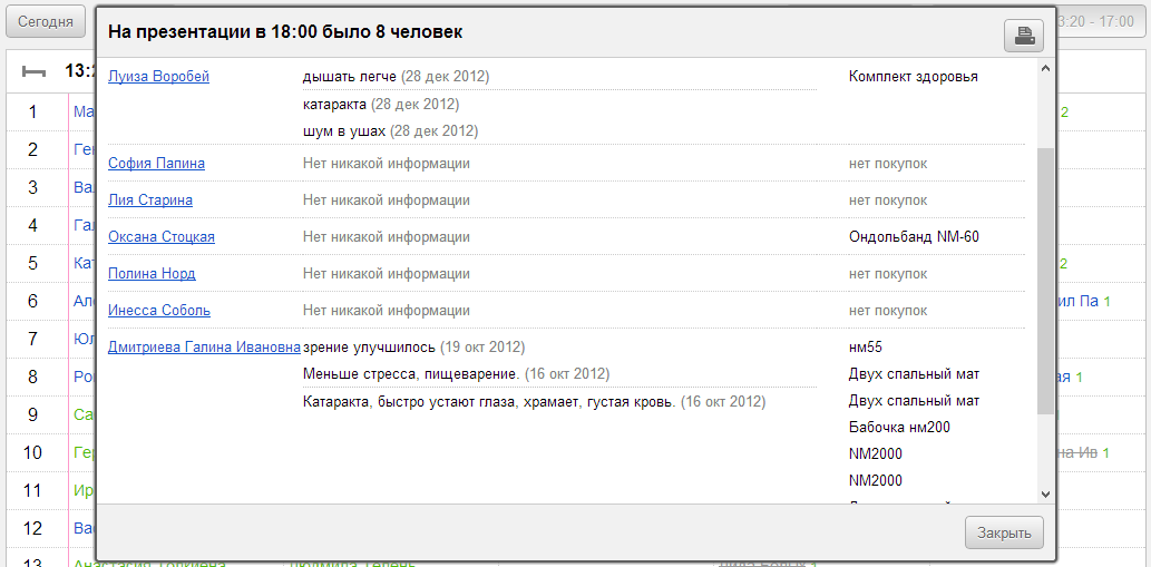 окно со списком посетителей. Нажав на имя посетителя, Вы сможете перейти в его