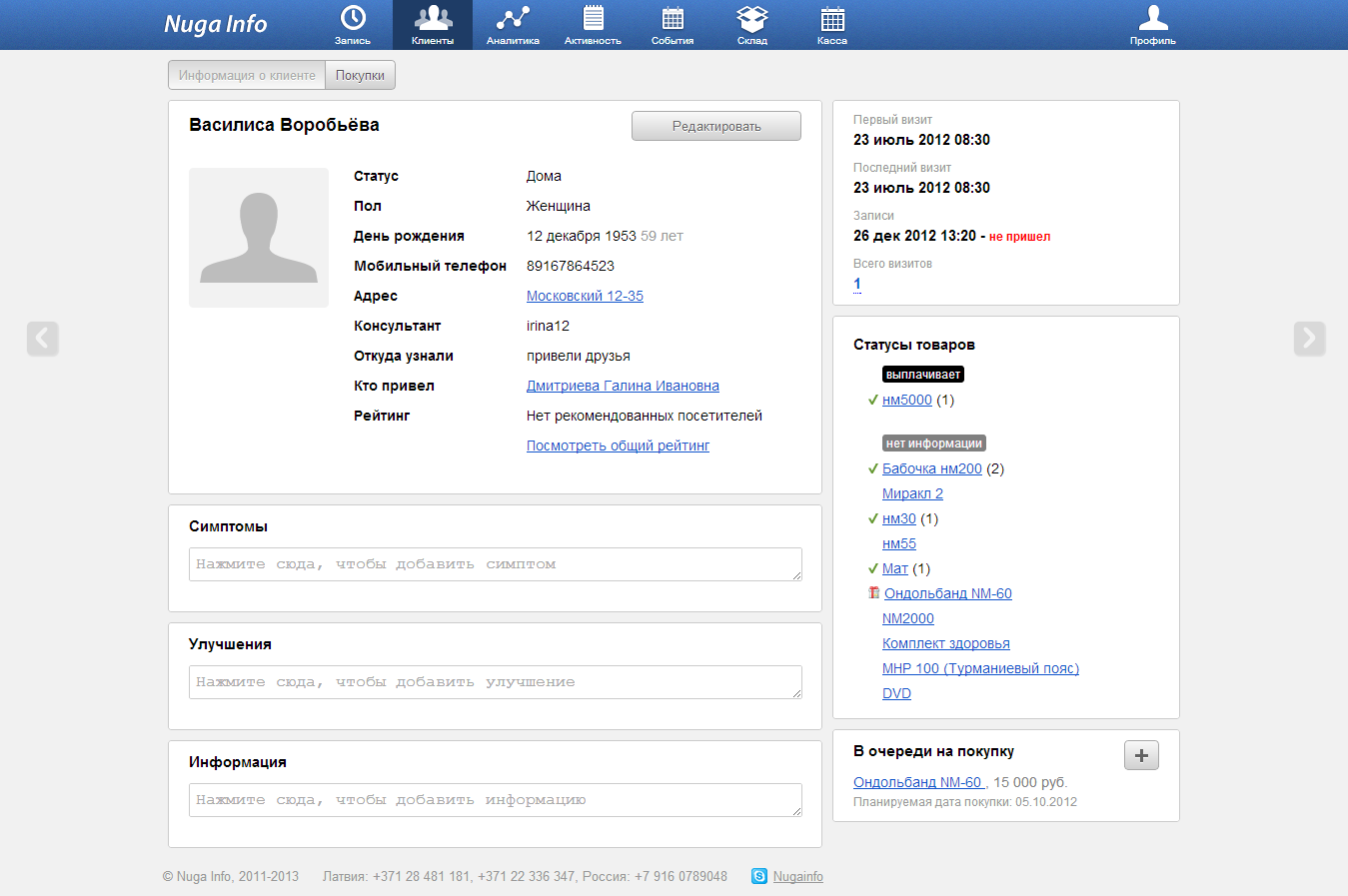Записывайте в информацию всё, что сможет помочь Вам в работе с посетителем,