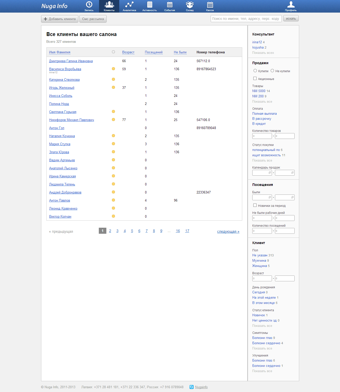 В системе Nuga Info есть возможность импортировать и экспортировать клиентскую базу. В первом случае Ваша база должна быть сформирована в файле “Excel” по нашему образцу, во втором случае мы высылаем по почте “Excel” базу по запросу. Для того, чтобы импортировать базу, свяжитесь с нами.