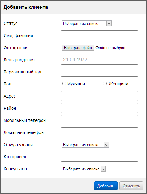поле – “Фотография”, в этом поле Вы можете загрузить фотографию клиента с Вашего