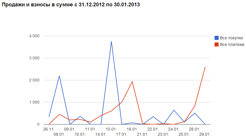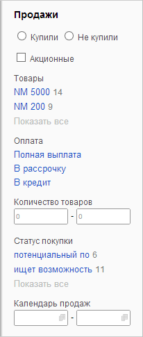 Здесь зафиксированы все покупки за полную выплату по дате, товару, клиенту и сумме; таблицу можно сгруппировать по товарам. -