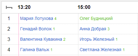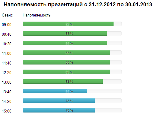 Вверху таблицы, по горизонтали, располагается время сеансов.