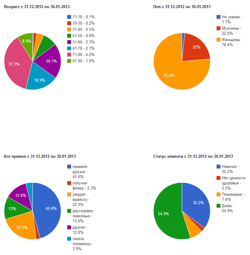 привёл” показывает, откуда посетители узнают о Вашем салоне. Последний график