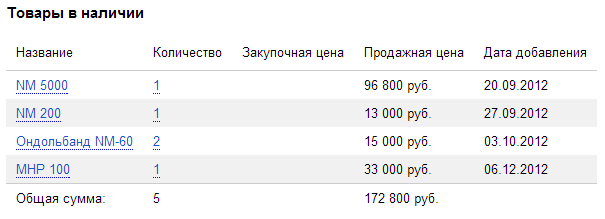Далее следует “Закупочная цена”, “Продажная цена” и “Дата добавления”.