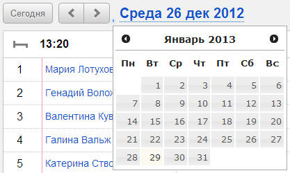 Нажав кнопку “Сегодня”, Вы быстро переместитесь на сегодняшний день.