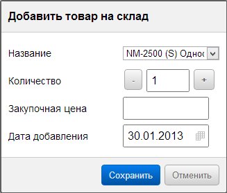 нажмёте на кнопку “Сохранить”, товар будет добавлен на баланс склада.