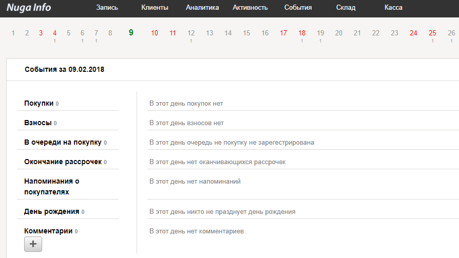 Все важные события за день, покупки, дни рождения, комментарии, напоминания.